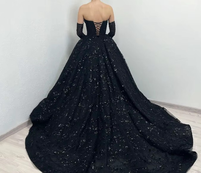 Glitter Gothic Style Wedding Dress Off Shoulder Indira Black