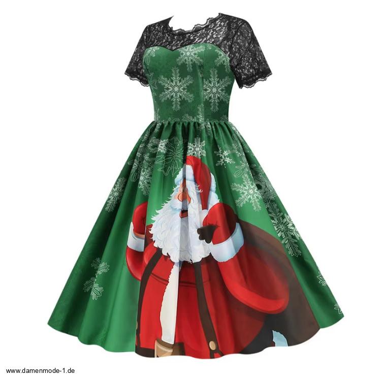 Vintage Style Rockabilly Weihnachtskleid Cathleen Knielang mit Ärmel