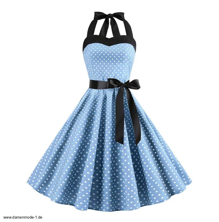 Neckholder Träger 50er Rockabilly Kleid Knielang Hellblau Gepunktet