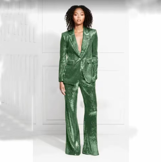 Schickes Pailletten Glitzer Hosenanzug Evina in Grün