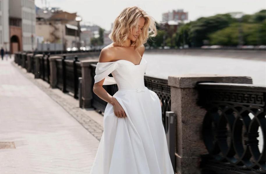 Schulterfreies Organza Brautkleid Luna mit Schleppe