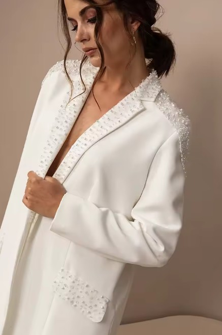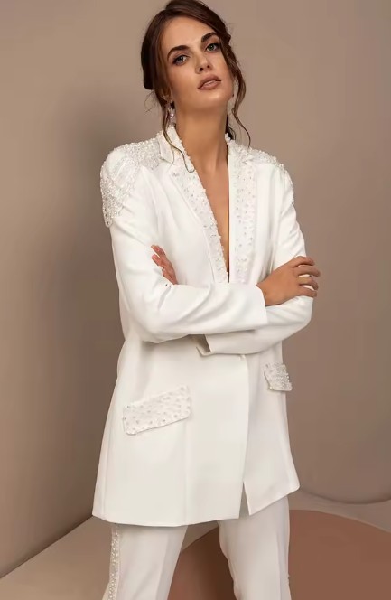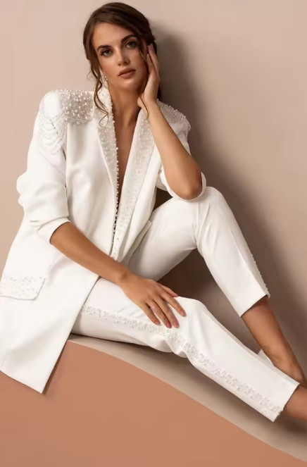 Bridal two-piece trouser suit Ingela for the registry office with pearl applications