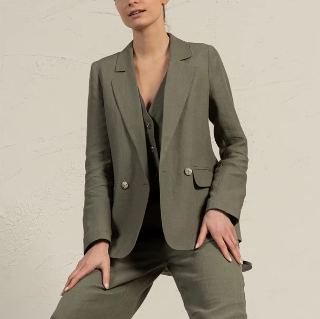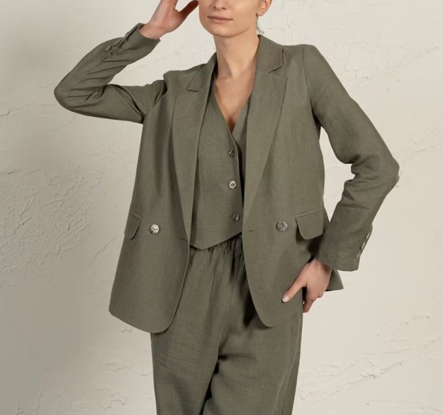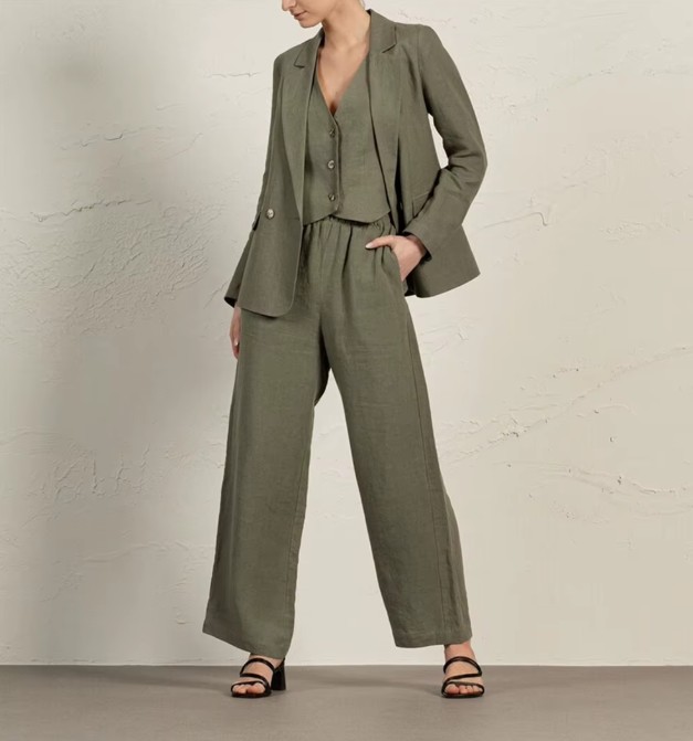 Leinen Damen Hosenanzug Elektra Dreiteilig in Olivgrün