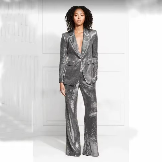 Schickes Pailletten Glitzer Hosenanzug Evina in Silber
