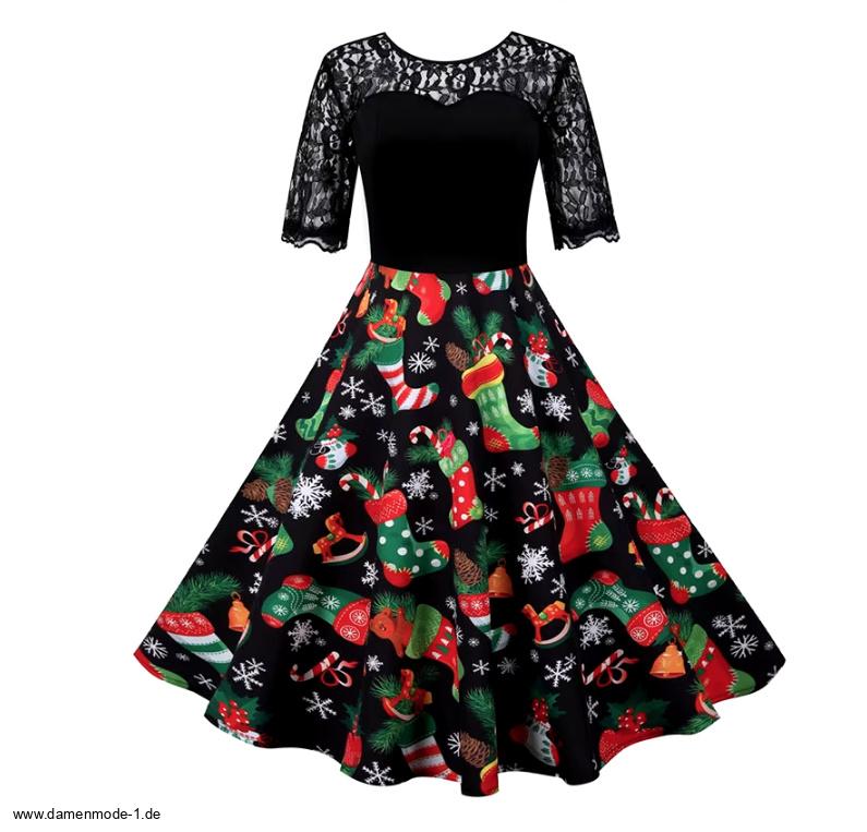 Vintage Style Rockabilly Weihnachtskleid Cinzia Knielang mit Ärmel