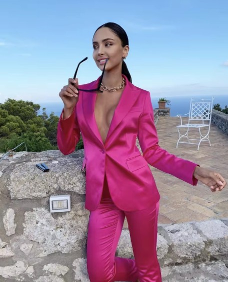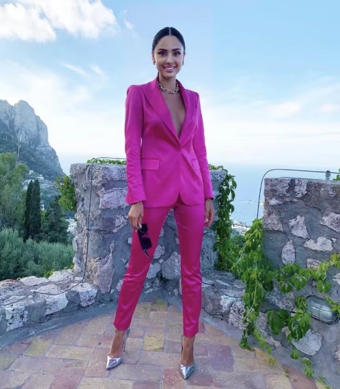 Damen Satin Hosenanzug Emmy Elegant – Festlich in Pink