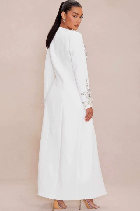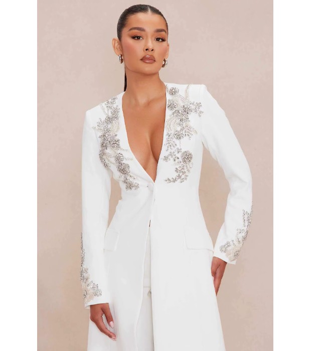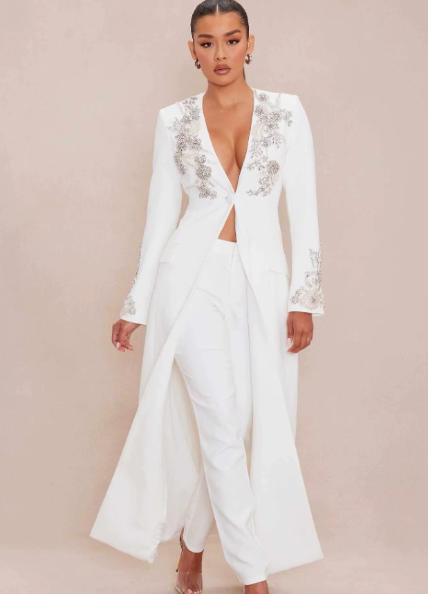 Braut Hosenanzug für den Standesamt mit Long Blazer und Strass Blumen