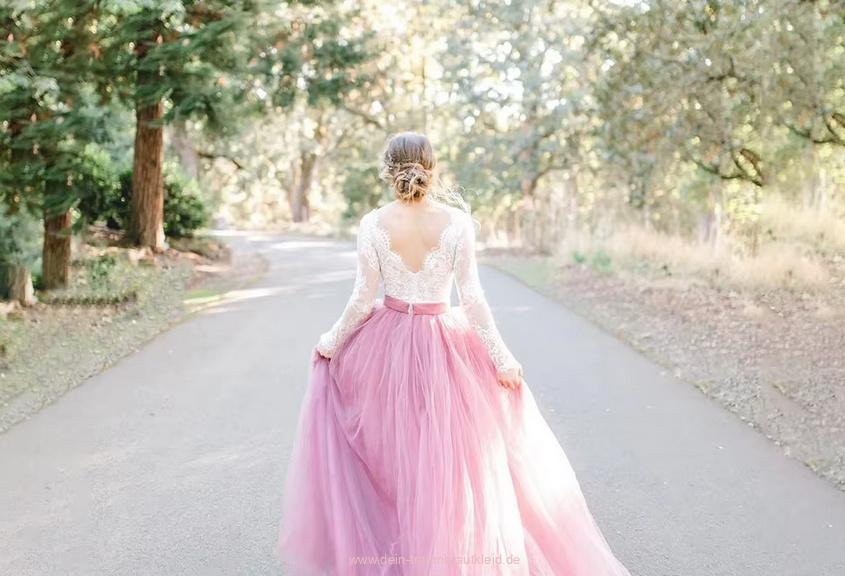 A-line tulle wedding dress Gail with lace back neckline in white lilac
