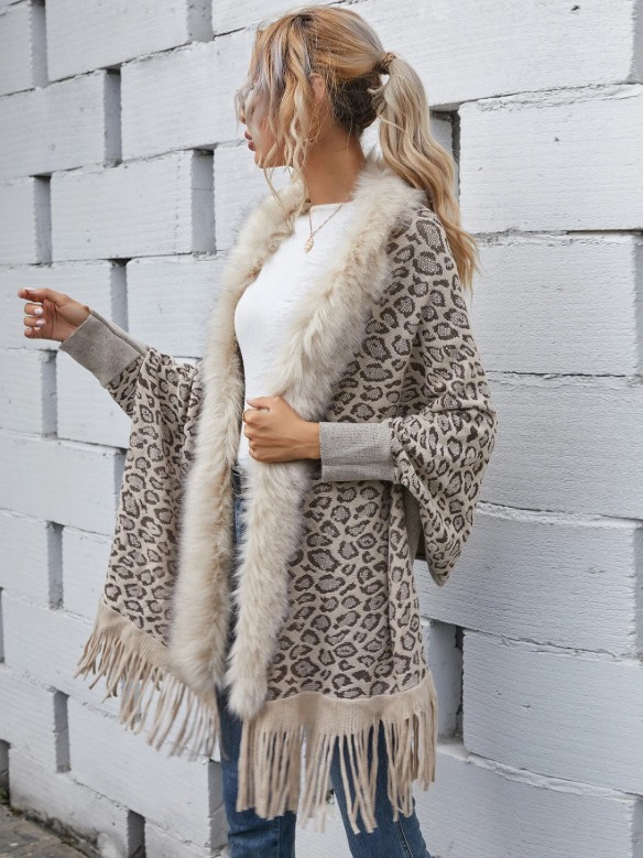 Leo Print Women’s Cardigan Poncho Elele Beige