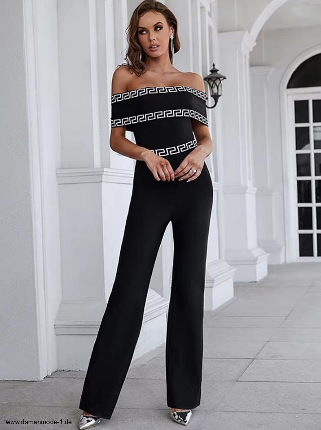 Bleistift Etui Damen Overall One-Piece Schulterfrei Elegant in Schwarz