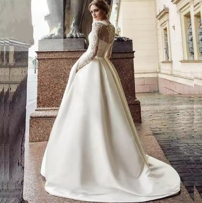 Satin Langarm Brautkleid Josephine Hochzeitskleid mit Blumen Stickereien