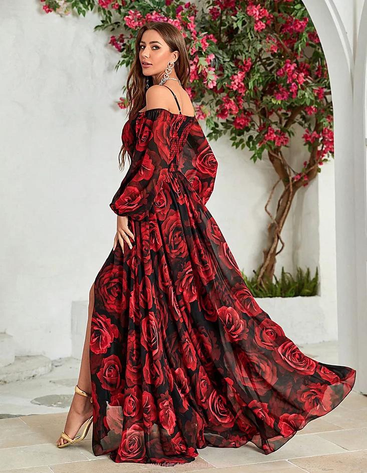 A Linie Spaghettiträger Kleid Elegant für Hochzeitsgäste mit Rote Rosen