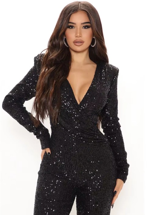 Glitter Bodycon Jumpsuit One-Piece Esmeralda in Black
