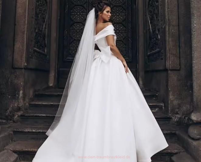 Schulterfreies A Linie Brautkleid Heike mit Schleife