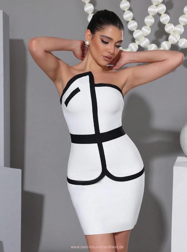 Schulterfreies Mini Standesamt Brautkleid mit Applikationen in Schwarz