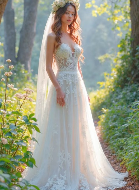 Spaghetti straps A line boho style wedding dress with lingerie top and lace