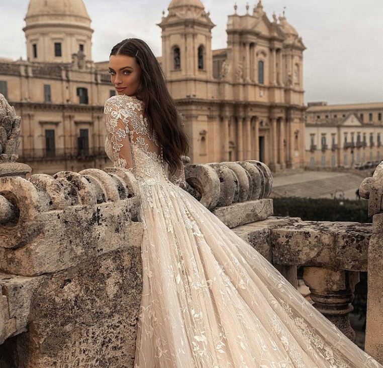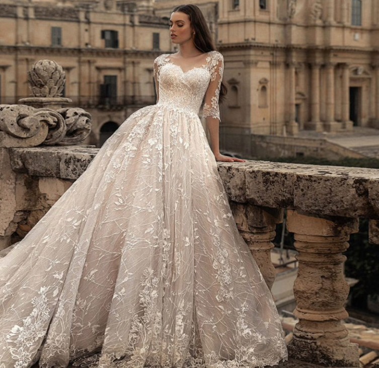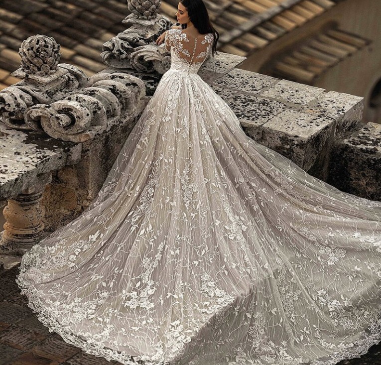 Princess wedding dress Ivonne in ivory with train and embroidery