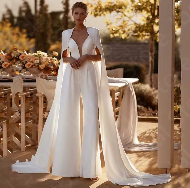 A Linie Braut Overall Einteiler für den Standesamt Ilknur mit Cape