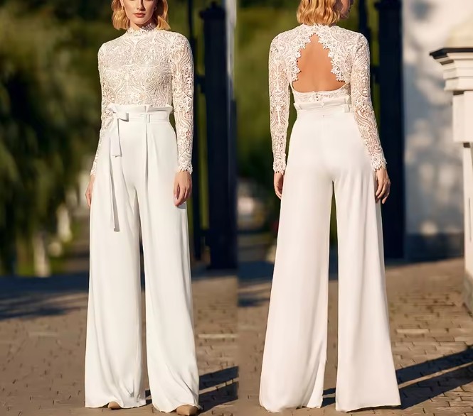 Langarm Braut Overall Einteiler Jade mit Rückenausschnitt
