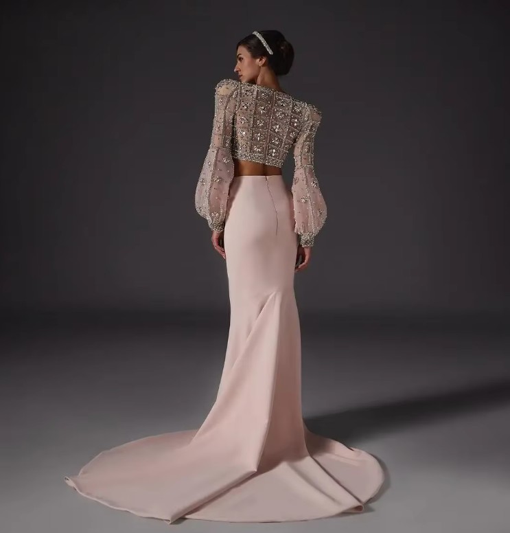 Two-piece luxury fit and flare wedding dress Julie with rhinestone pearl embroidery