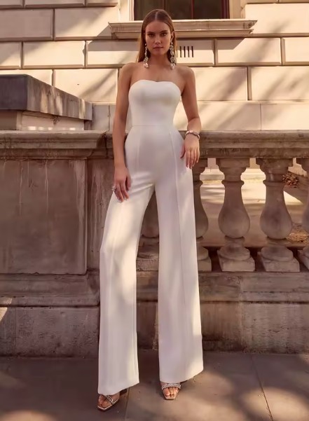 A Line 2in1 Bridal Jumpsuit One-piece for the Registry Office Ilona Train Detachable