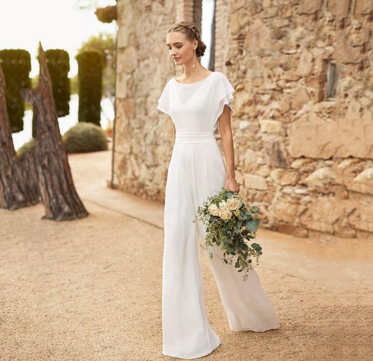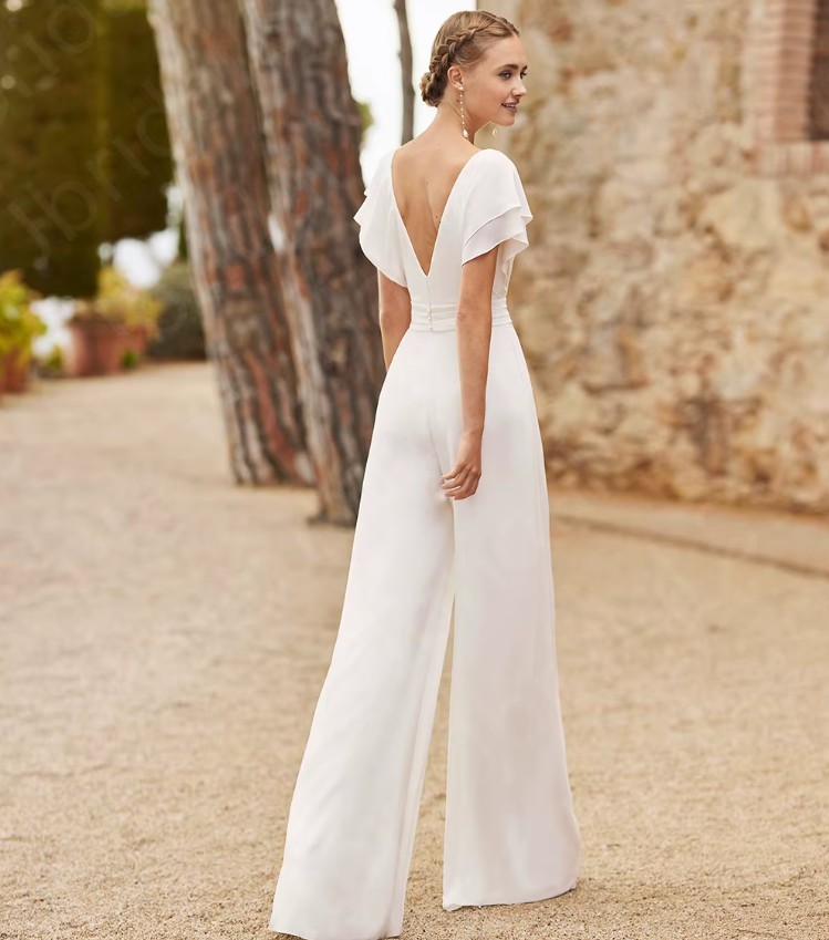 A line chiffon bridal jumpsuit one-piece for the registry office Ines