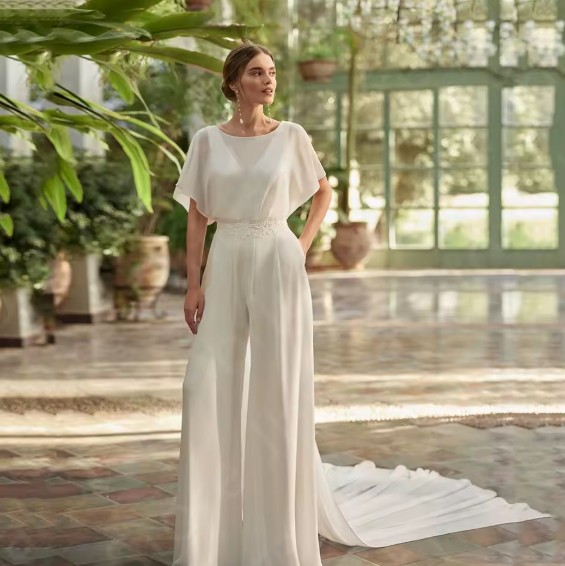 A line chiffon bridal jumpsuit one-piece for the registry office Innozentia