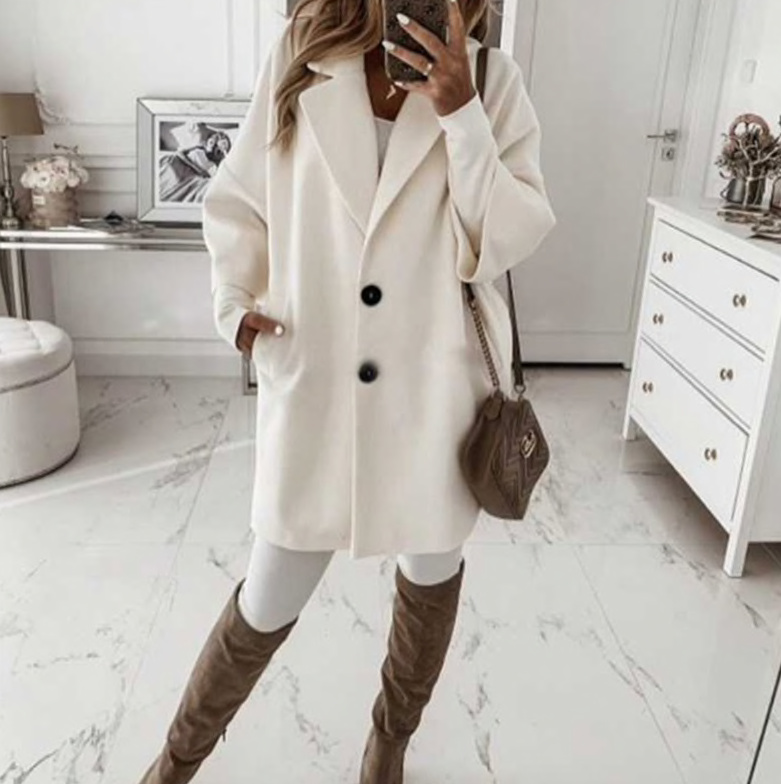 Elegante Herbst – Winter Damen Wollmantel Kurz mit 3/4 Ärmel in Weiß