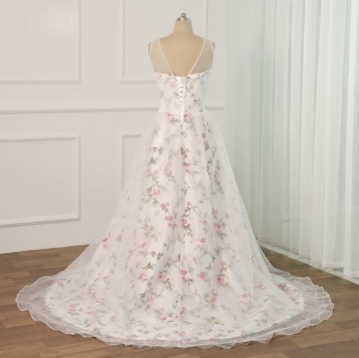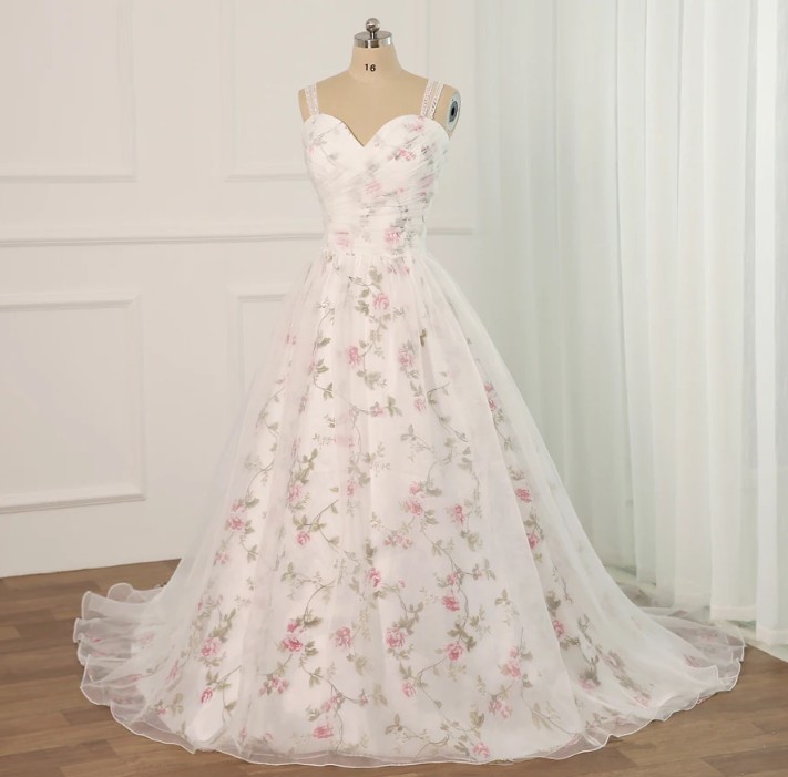 A Linie Brautkleid Jolyne mit Pinselscheleppe und Bunte Blumen