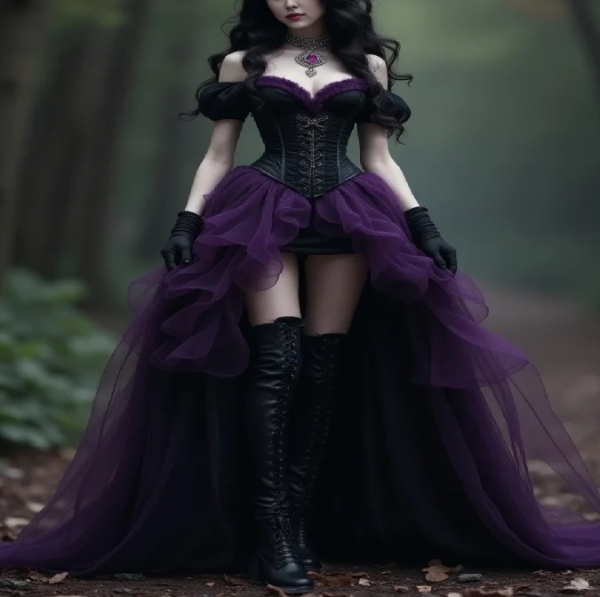 Gothic Stil Vokuhila Brautkleid in Lila Schwarz Sexy