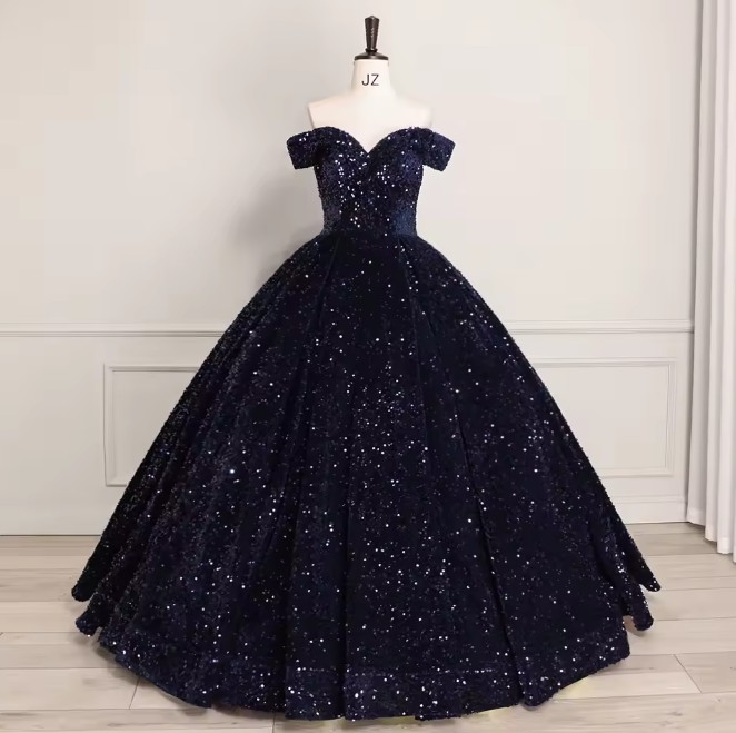 Off-the-shoulder glitter ball gown Eluana in royal blue