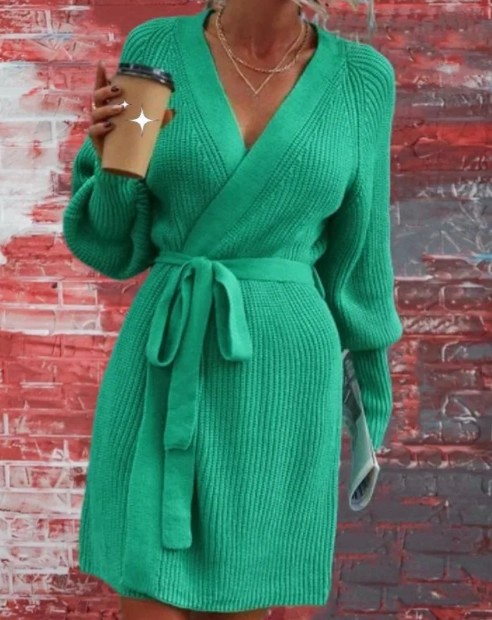 Langarm Damen Strickjacke Eike zum Binden in Grün