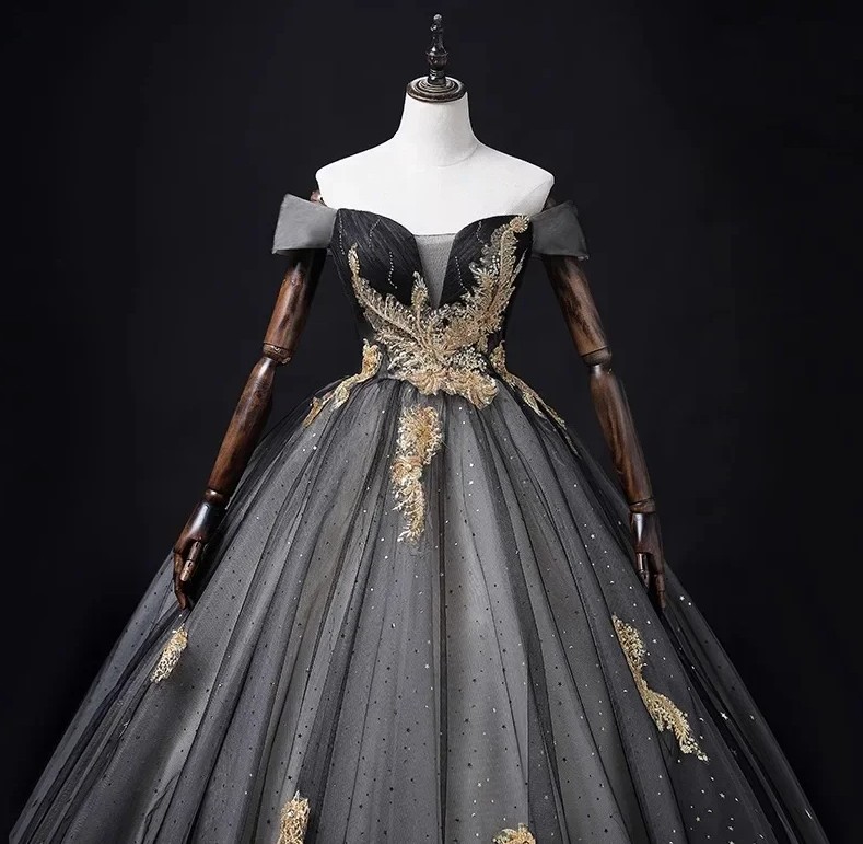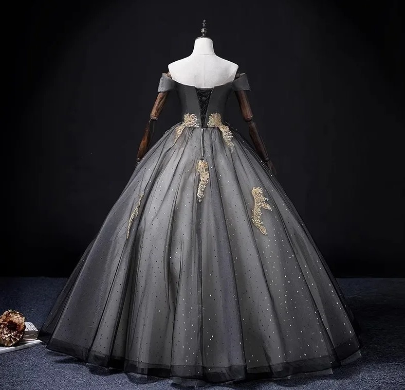 Schulterfreies A-Linie Prinzessin Brautkleid Jella Schwarz mit Spitze