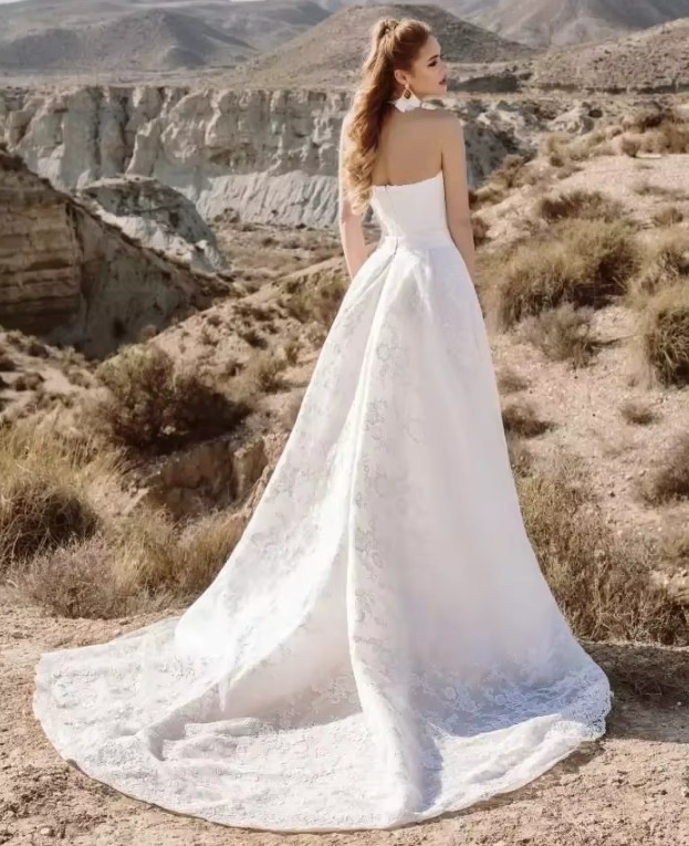 Fashion wedding overall jumpsuit one-piece Jade for the bride with lace train