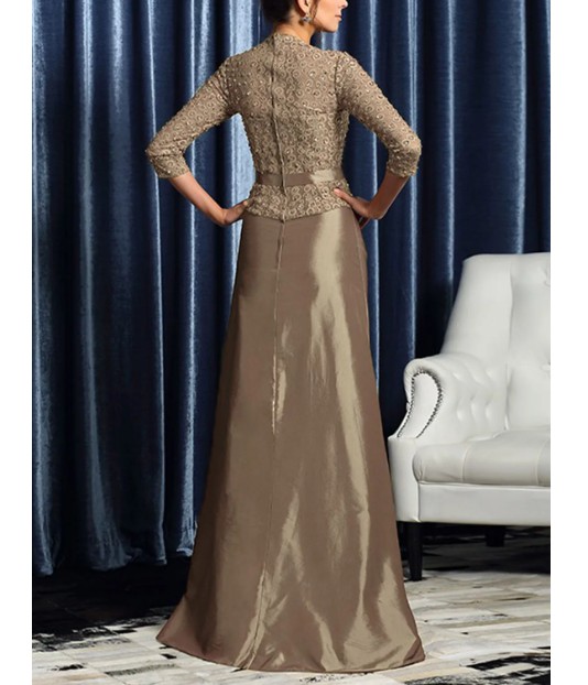 Langarm A -Linie Brautmutterkleid Inge in Gold Braun