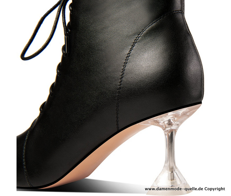 Sexy Leder High Heels Stiefeletten in Schwarz