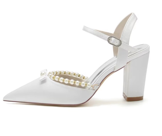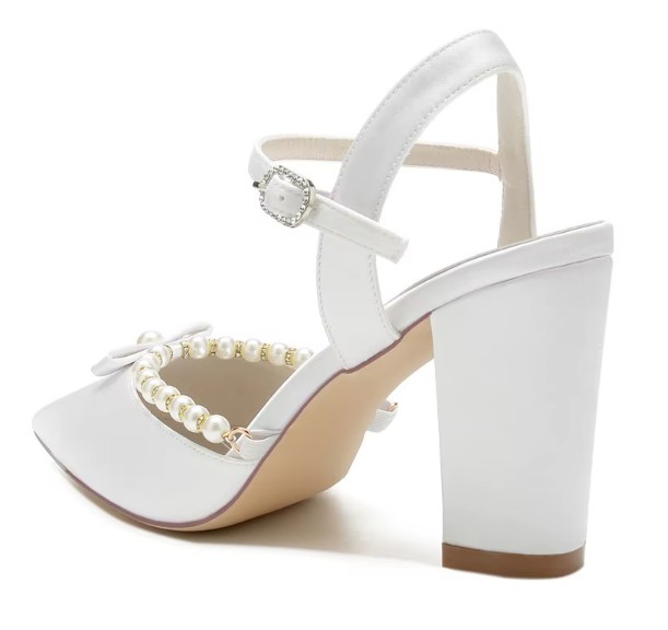 Blockabsatz Satin Perlen Brautschuhe Elna Weiß