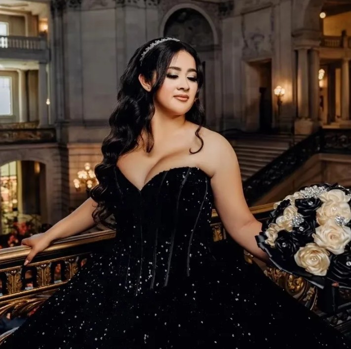 Schulterfreies Prinzessinnen Glitzer Ballkleid Elena in Schwarz