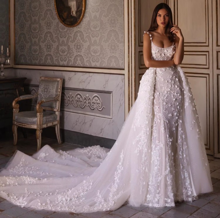 2in1 Vintage Style Princess Wedding Dress Emina with 3D Flowers and Train