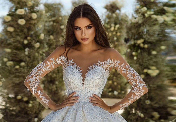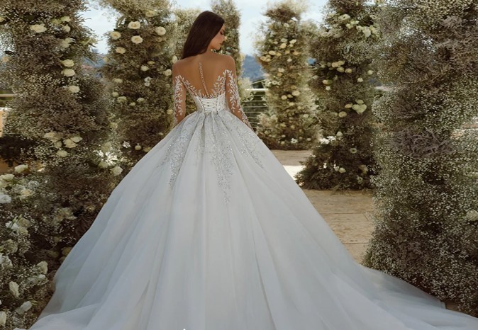 A-line princess wedding dress Erika with illusion neckline tattoo lace and train