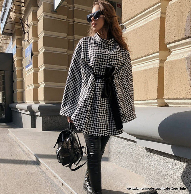 Damen Poncho mit Hahnentritt Muster