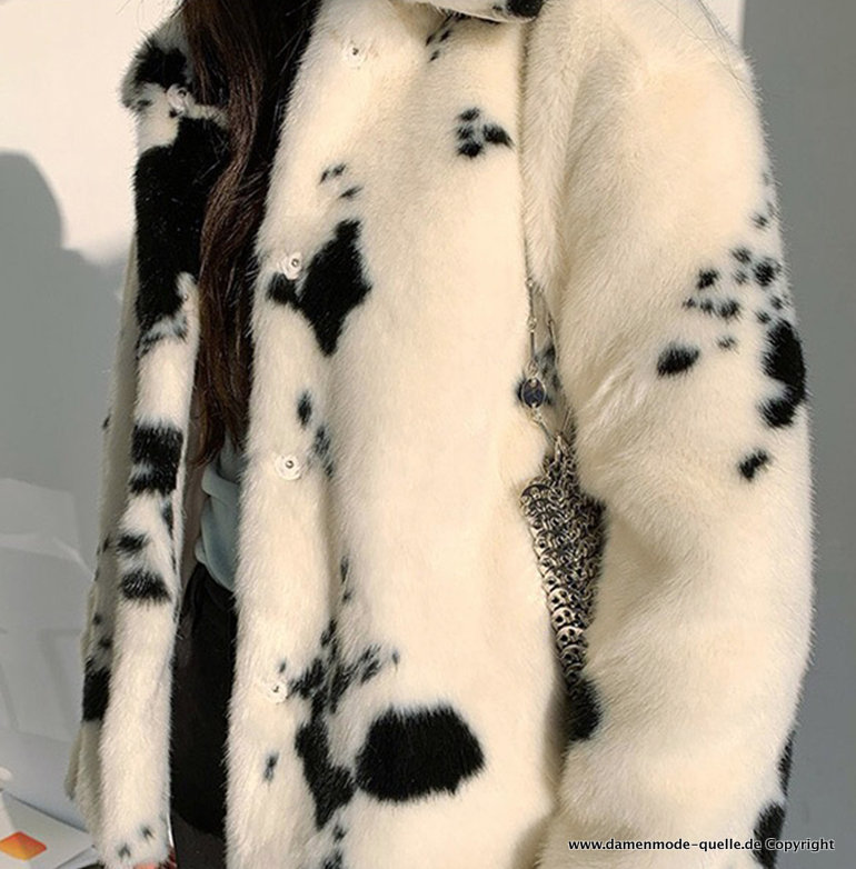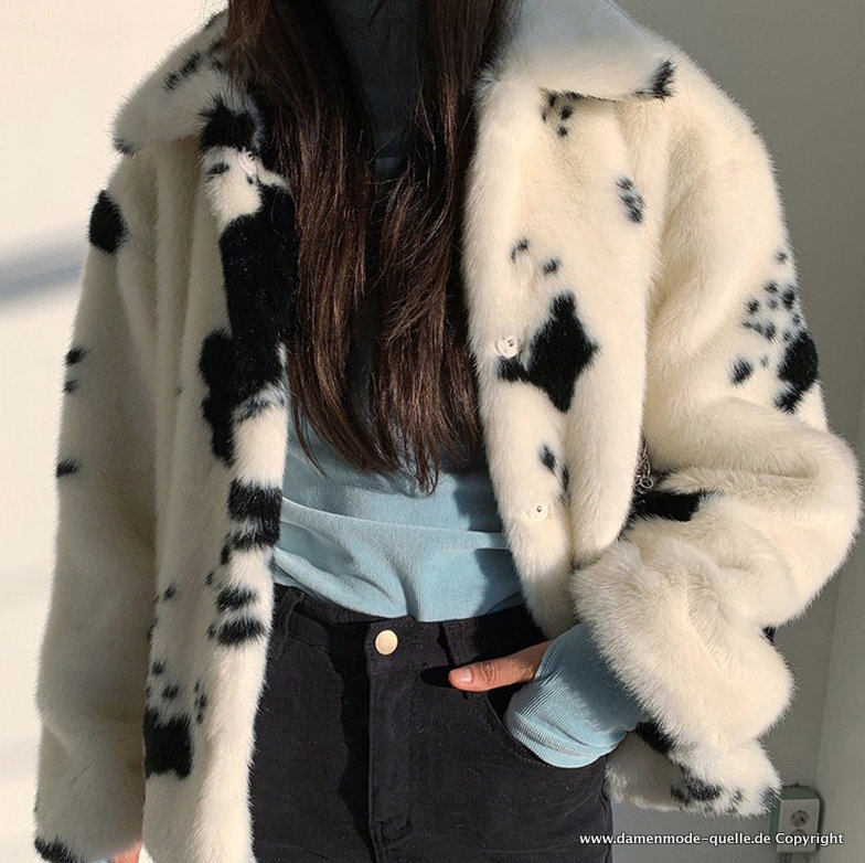 Kurze Plüsch Pelzmantel Schwarz Weiß
