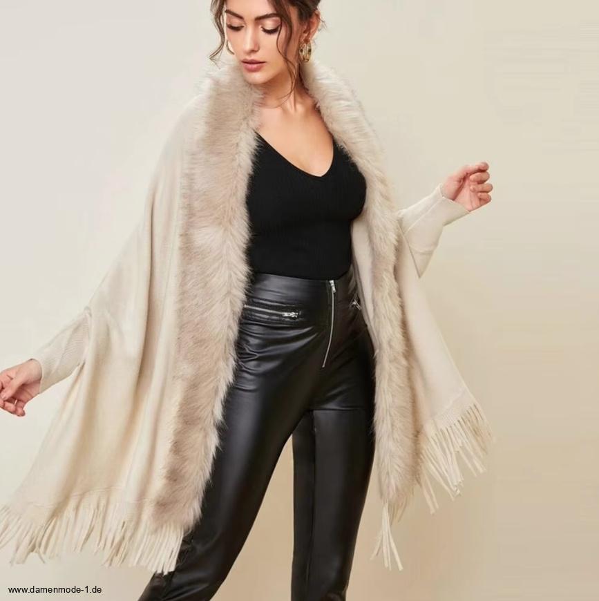 Damen Strickjacke Cardigan Caja mit Plüschkragen in Elfenbein