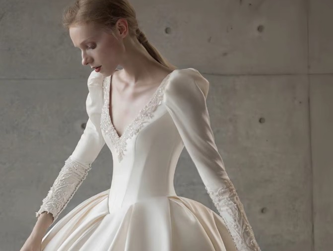 Classic long-sleeved princess satin wedding dress Èlodie with train