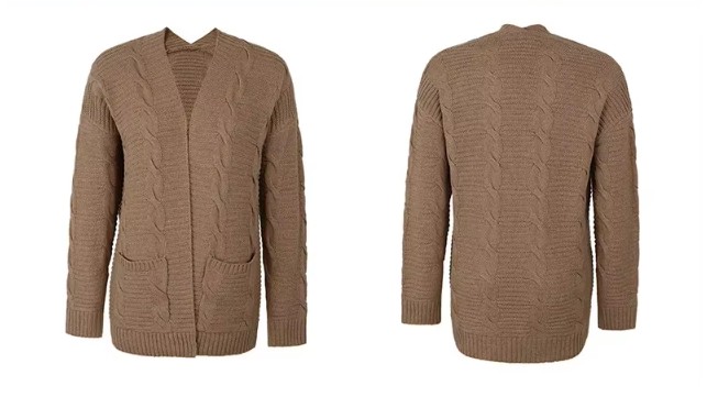 Kurze Damen Strickjacke Cardigan Eyvette mit Taschen Braun