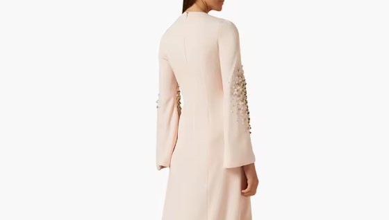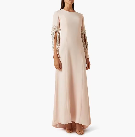 A-line evening dress Enie in champagne with pearl rhinestone embroidery