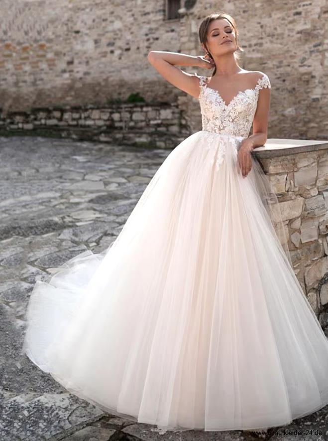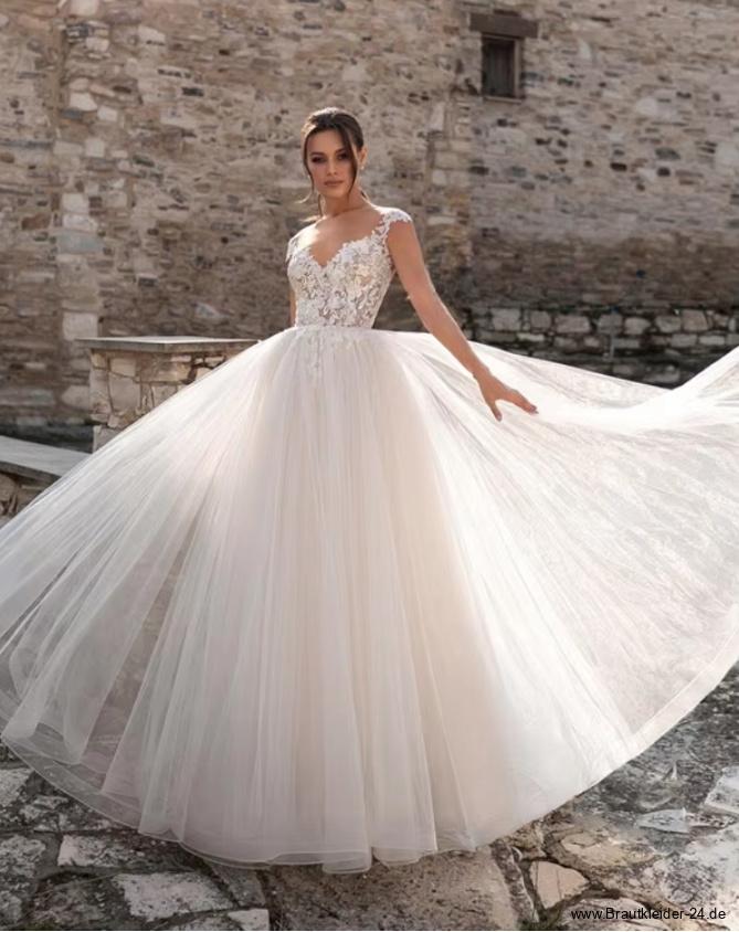 A Linie Herz Dekollette Brautkleid Delphine mit Spitze Lang