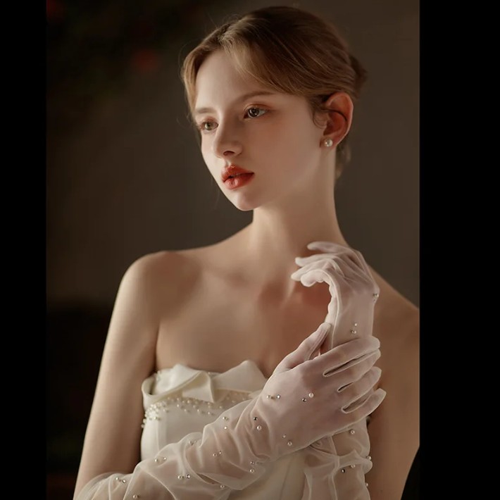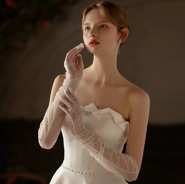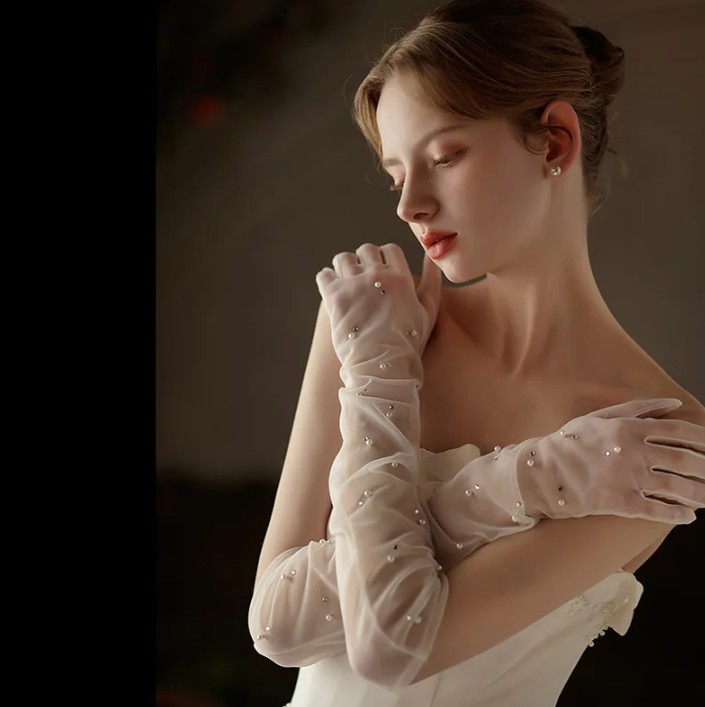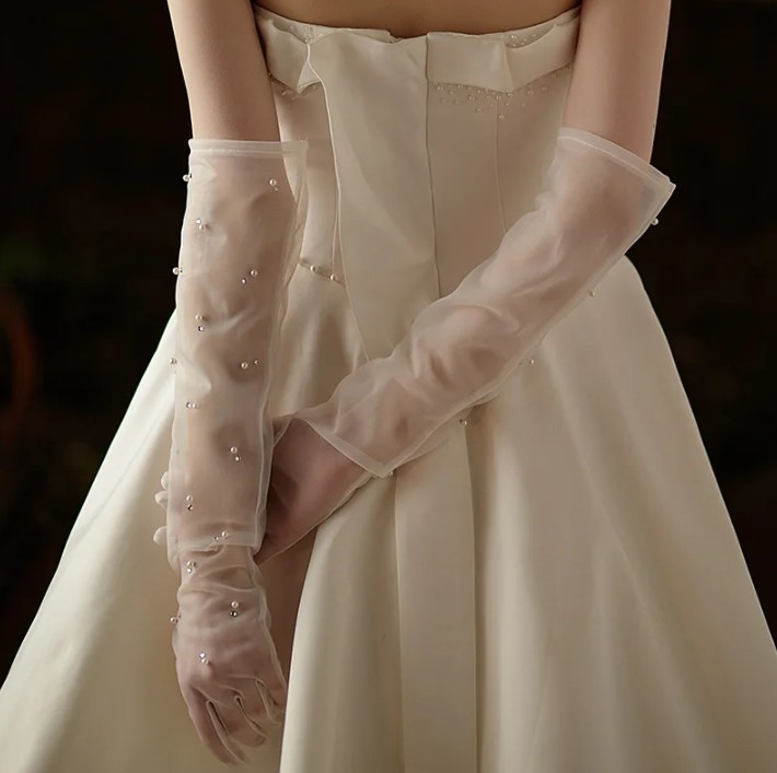 Lange Brauthandschuhe Juliet mit Perlen Applikationen