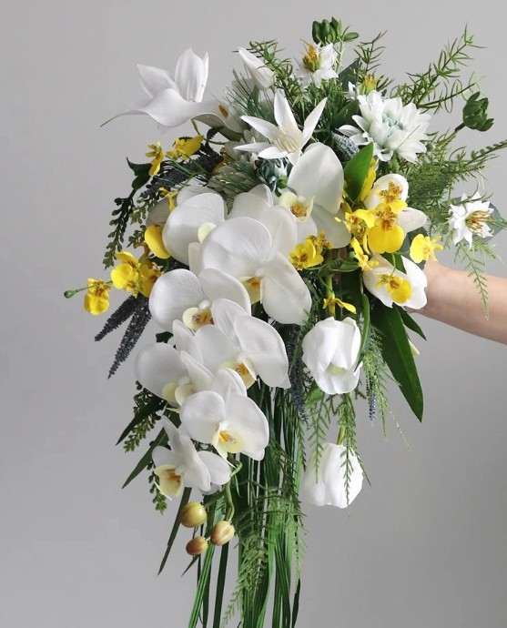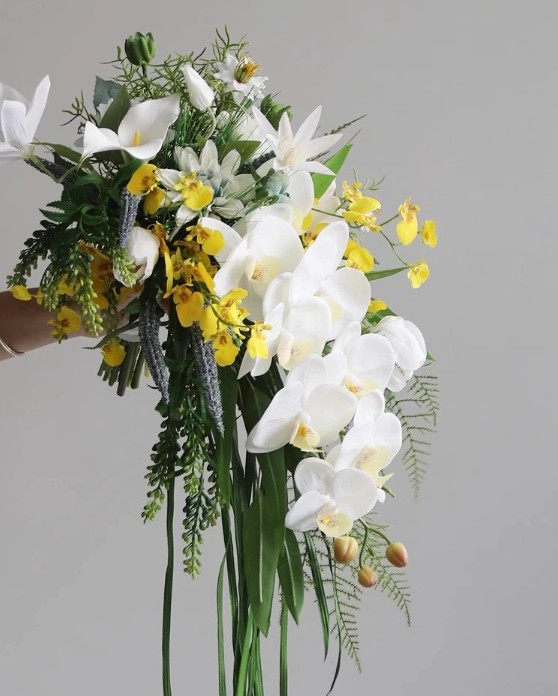 Waterfall bridal bouquet Emma with orchids