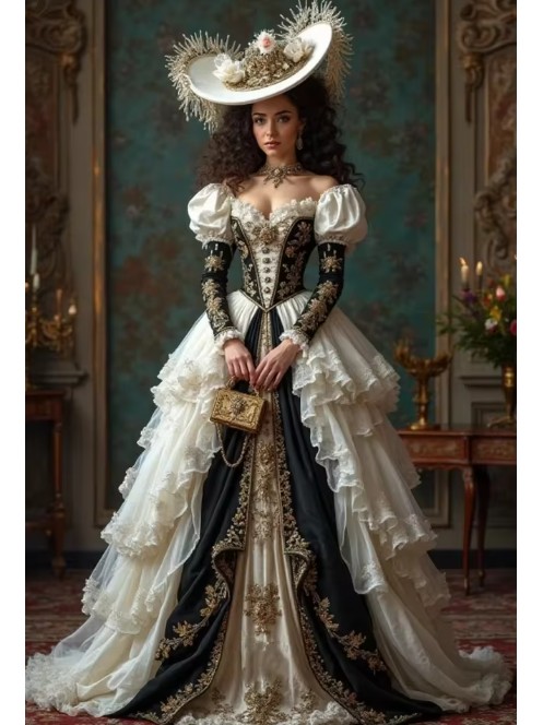 Viktorianisches Barock Braukleid Eefje mit Spitze Stickereien und Schnürkorsett